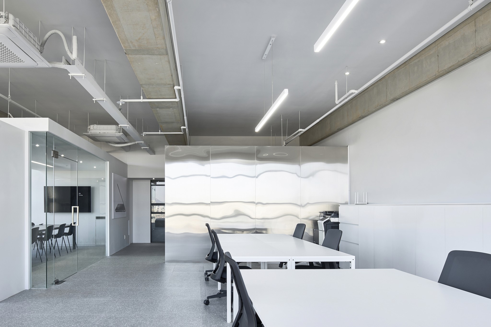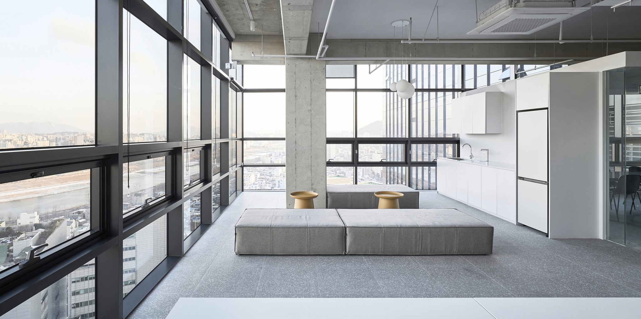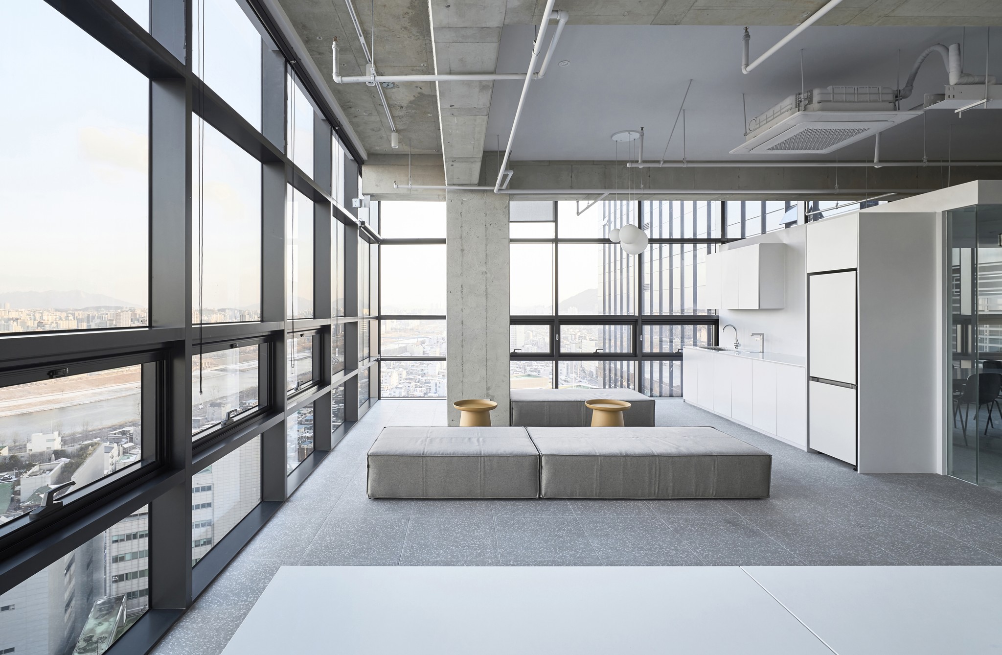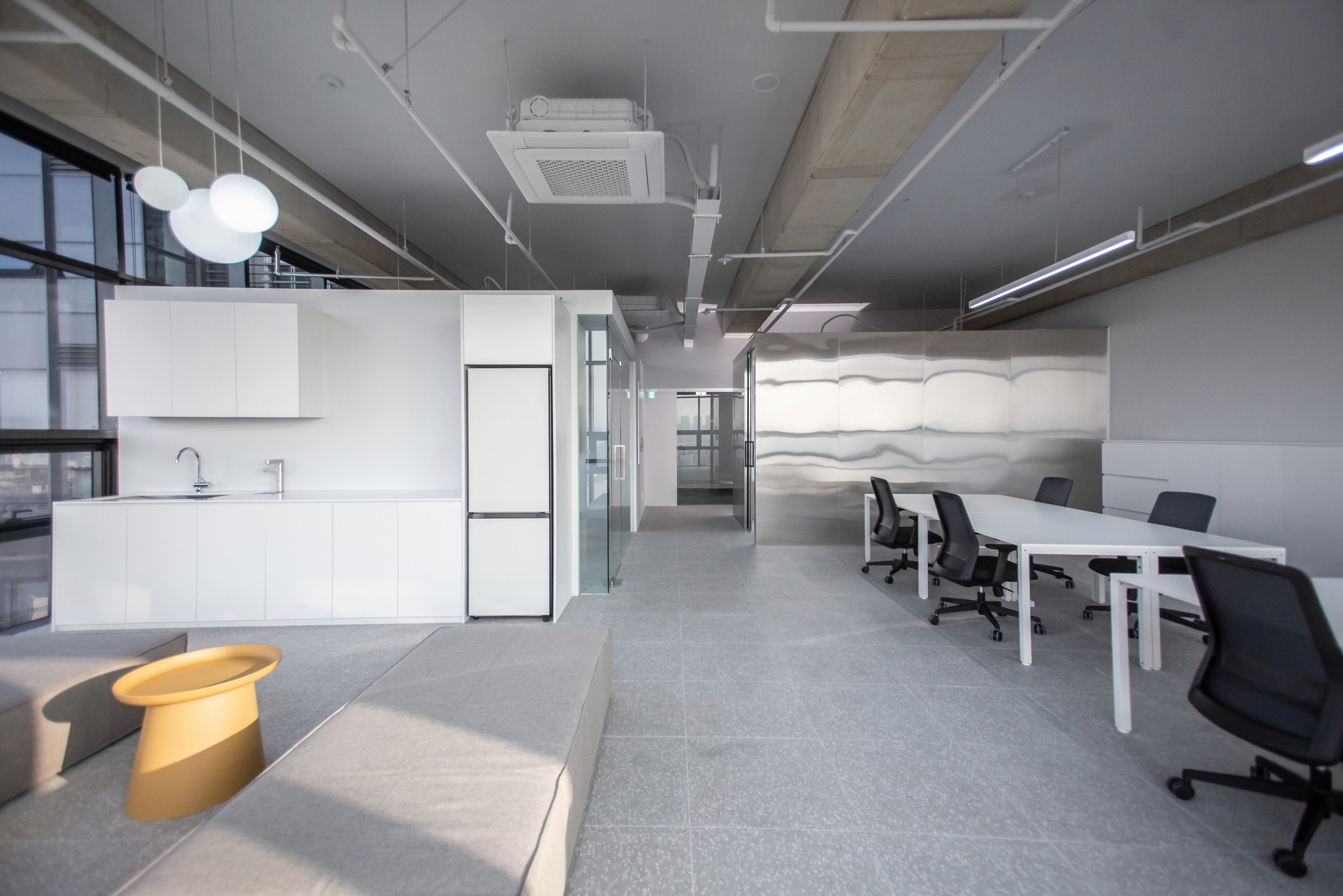 Defining's Seongsu office is located in Seongsu-dong, the fastest-changing region in Seoul. In the past, factories and workshops used to be gathered together, but recently, it has emerged as a hot place for young hipsters and entrepreneurs due to tremendous changes, and is now regarded as a center of the design, fashion, and entertainment industries. Seongsu office is designed to be an ideal space to absorb the creative energy that Seongsu-dong emits and provide the best service for its customers. In addition, by drawing concrete, the symbolic material of Seongsu-dong, into the space to create a sense of Seongsuness, and aluminum was used in many areas to express Defining's future vision. Each space is placed in an ideal location optimized for the functioning of the space, and these spaces are organically connected, perfectly implementing the balance of work and relaxation.